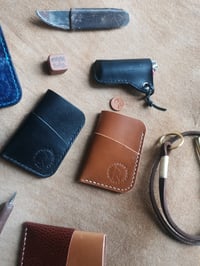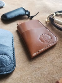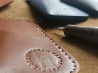 Slim cardholder with three compartments for cards and folded cash. Fully handmade using the finest vegetable tanned leather from european tanneries. Neat hand stitching and burnished edges to finish it off. The Triple can hold up to 8 cards nicely without coming bulky.